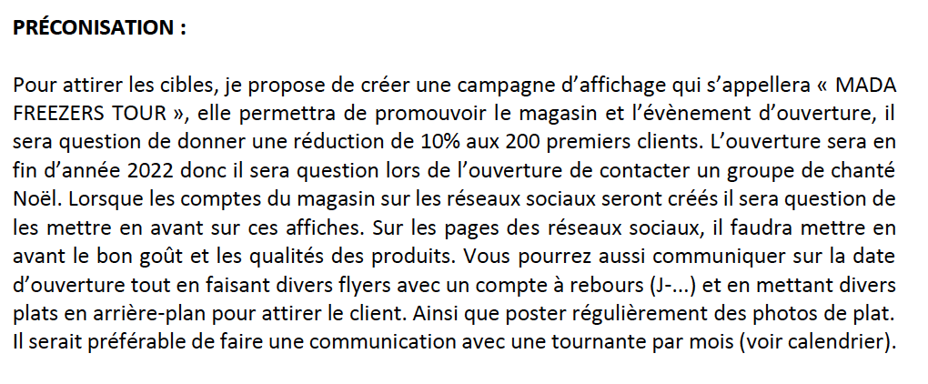 Je suis capable d’analyser de manière pertinente les moyens de communication commerciale (médias, hors médias, médias sociaux) car dans ce cas, j’avais pour mission d‘étudier la marque PICARD, c’est pour cela que j’ai effectué des préconisations en analysant les moyens de communication les plus pertinents pour pallier ce problème.