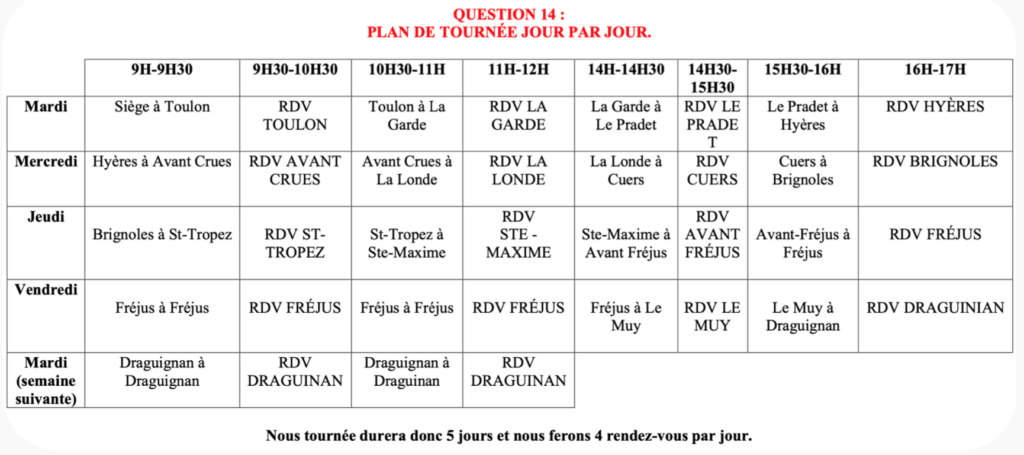 Je suis capable de préparer un plan de découverte qui permette de profiler le client et de découvrir ses besoins car lors des différents cours de vente, j’ai pu travailler sur les plans de découverte et ai pu mettre en place un plan de tournée.